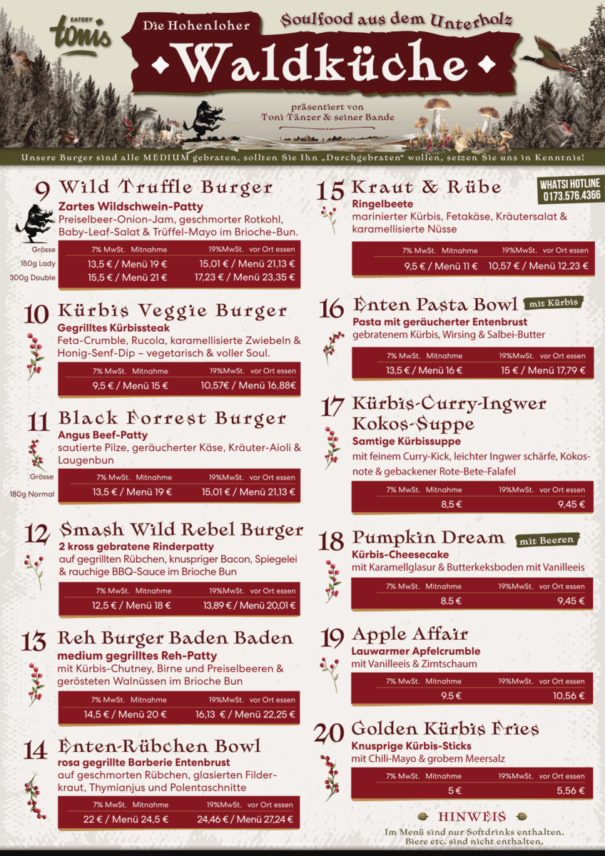 Einen Hinweis geben wir mit auf den Weg: Wir bieten absolut keinen Standard. Vom Rinderfilet, vom Burger, bis hin zum Lobster.Du bekommst bei uns wirklich etwas Einmaliges serviert! Selbst Pommes oder Popcorn verwandeln wir in eine Besonderheit.